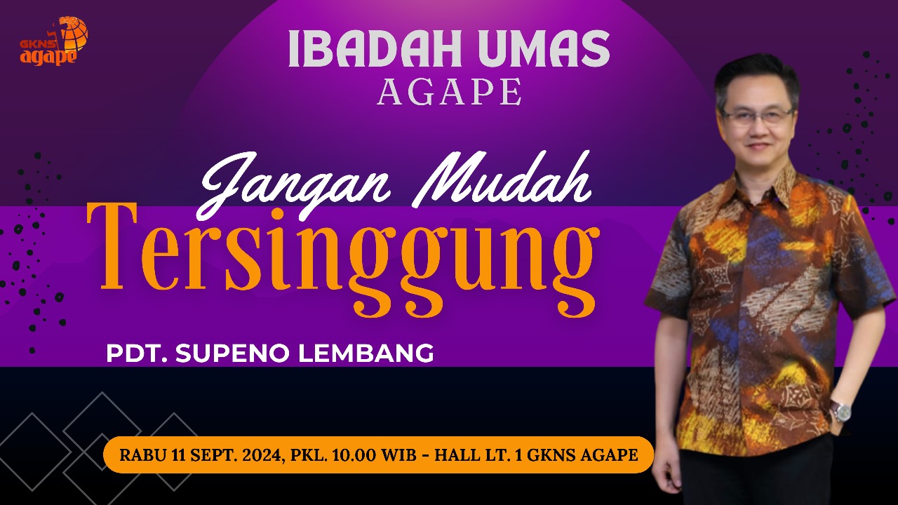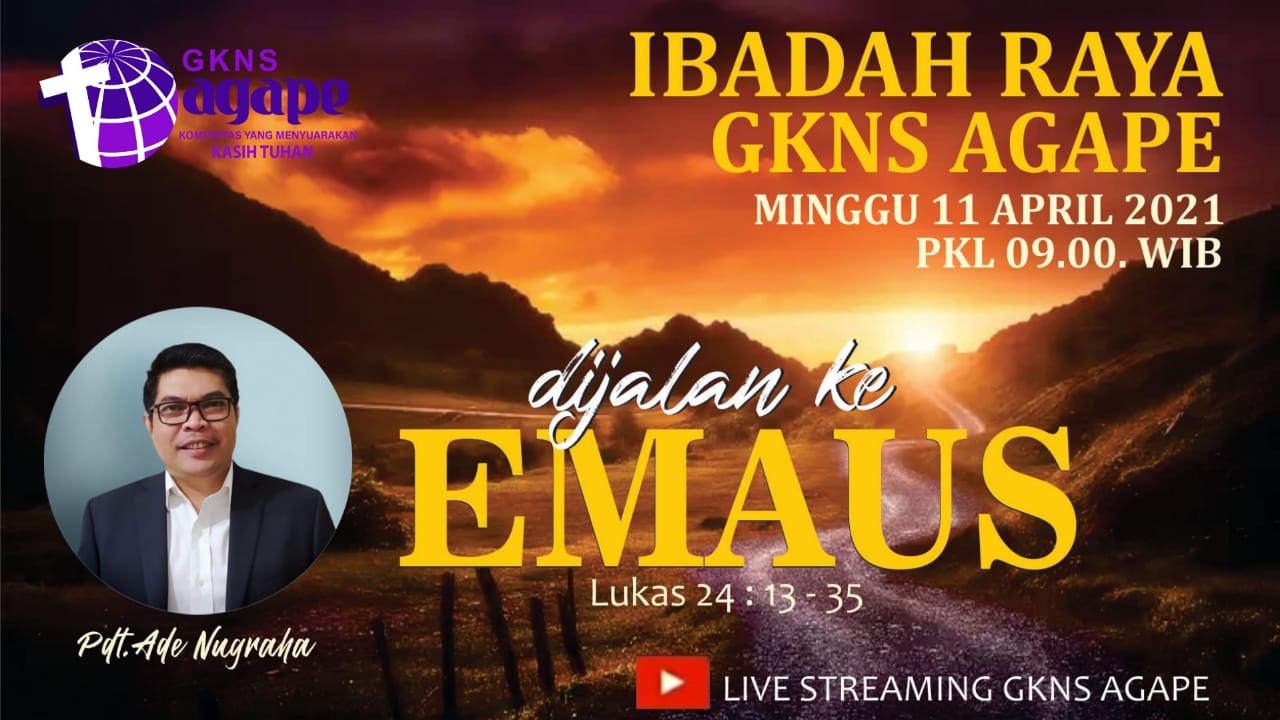 Shalom Jemaat GKNS Agape yang terkasih, mari siapkan waktu dan hati kita untuk mengikuti Ibadah Raya (Online) pada hari Minggu, 25 Oktober 2020; Pukul 09.00 WIB. Dengan Tema: "Hal Kekuatiran." Mat. 6:25-34